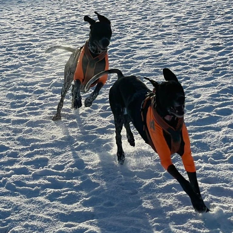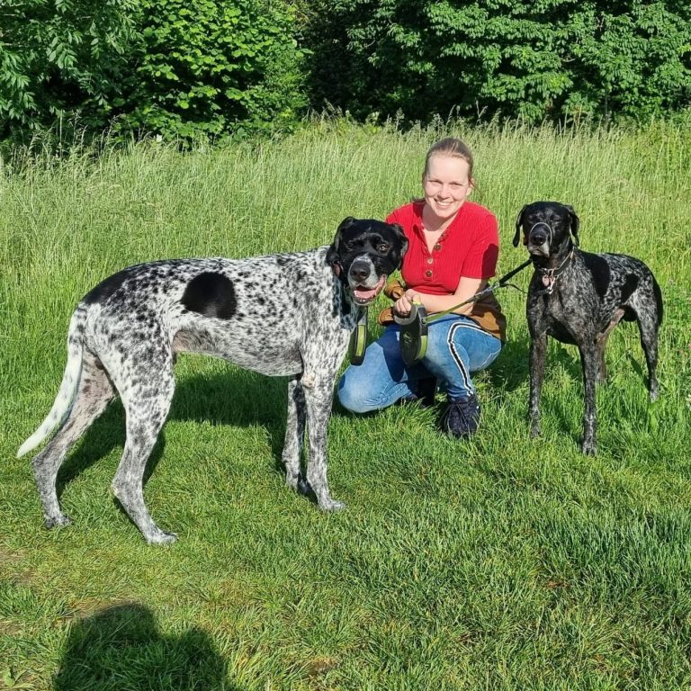 Twee van mijn eerste ‘klanten’, en niet meteen de makkelijkste! En dit bedoel ik positief: door deze twee lieve honden heb ik een heleboel ervaring opgedaan en spierballen gekweekt. Powerrr en Joonas zijn twee sporthonden die tot een paar jaar geleden met hun eigenaar aan wedstrijden bikejoring, dogscooter en canicross meededen. Ook nu traint zij nog bijna wekelijks met hen. Ze hebben energie voor tien, maar als deze eruit is gerend, zitten ze graag bij je op de bank voor een knuffel en daarna een diepe slaap.